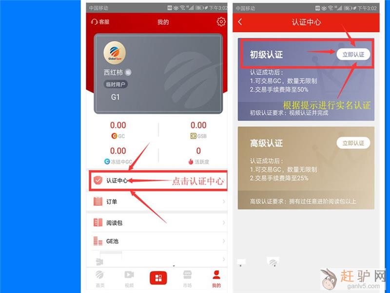 新用户登录点实名认证,选择初级认证 支付1.5进行人脸识别即可,认证后平台自动赠送你新手阅读包,每天阅读3分钟文章获得GC币,第二天发放奖励,30天产11.4个GC币欢迎www.ganlv5.com。